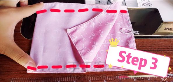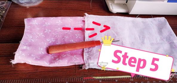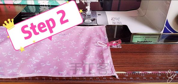 Step2:将松紧带放在表布的短边一端并进行缝合。