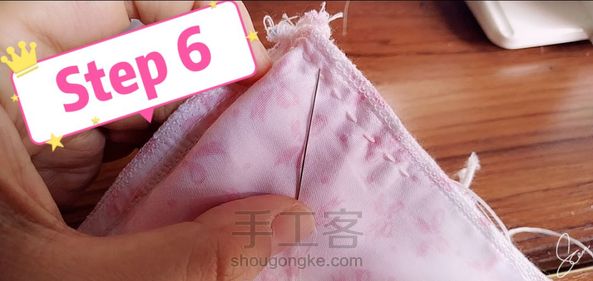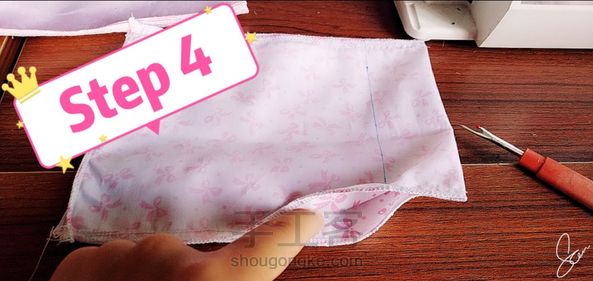 Step4:内布留翻口并缝合其余两边位置。