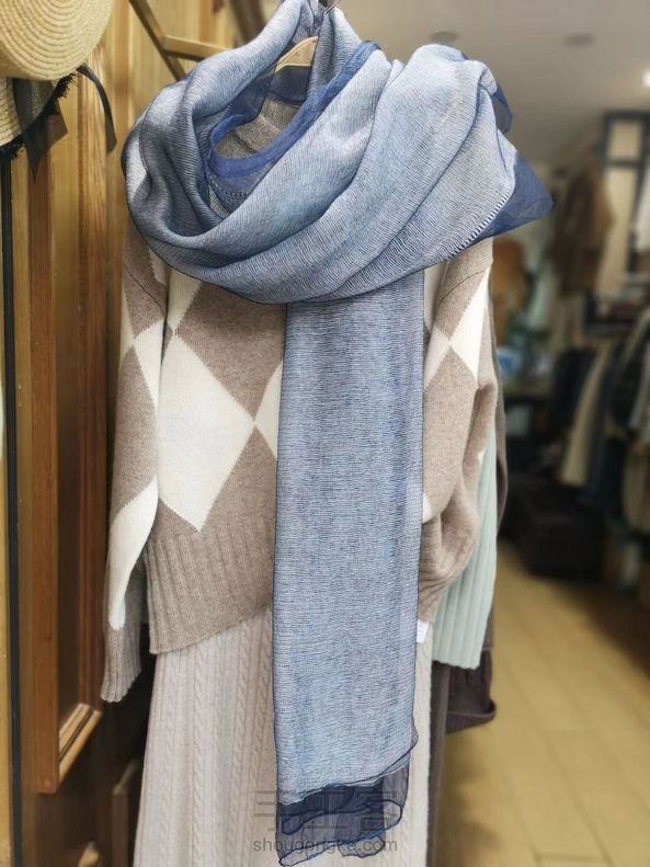 蓝染围巾新品--静谧 双层材质,一层白色马海毛,一层蓝染桑蚕丝,影影绰绰,温暖柔和