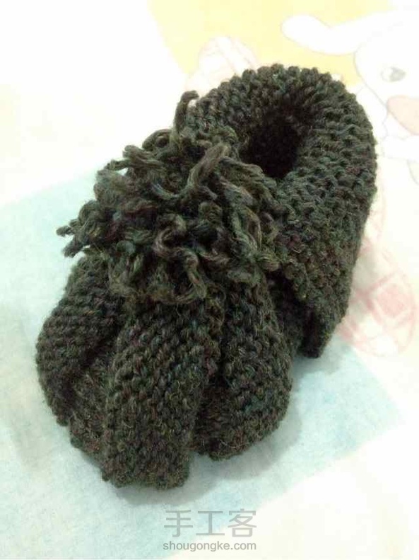 刚刚做好的宝宝鞋 嘻嘻 虽然是拿旧毛线练手颜色不好看 但是感觉还不错 内心满足感棒棒嗒