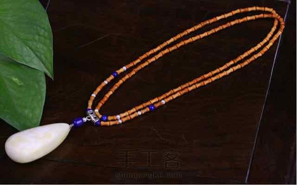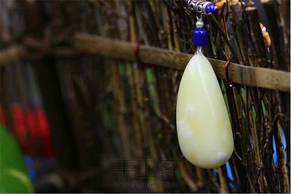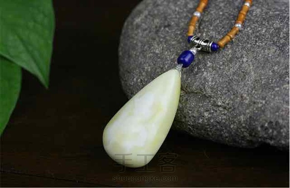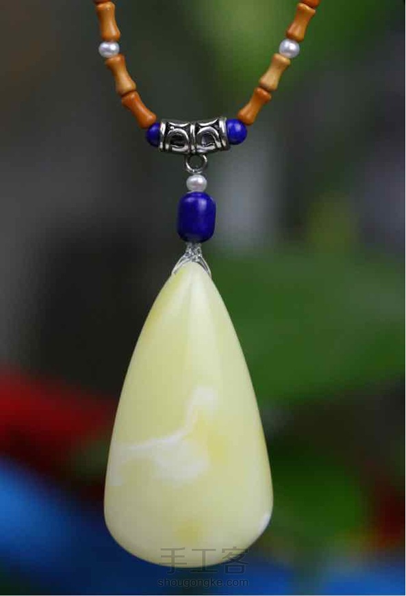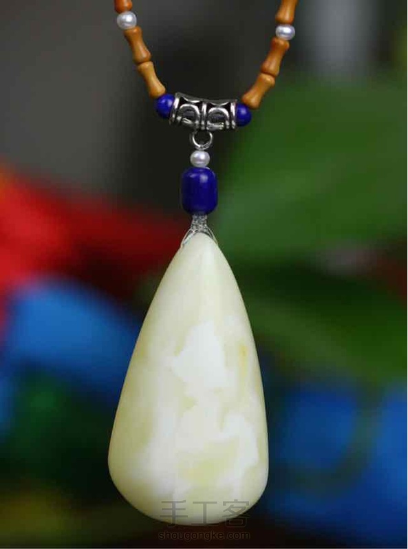 【白鹿】白蜡水滴吊坠,配青金石,珍珠,银