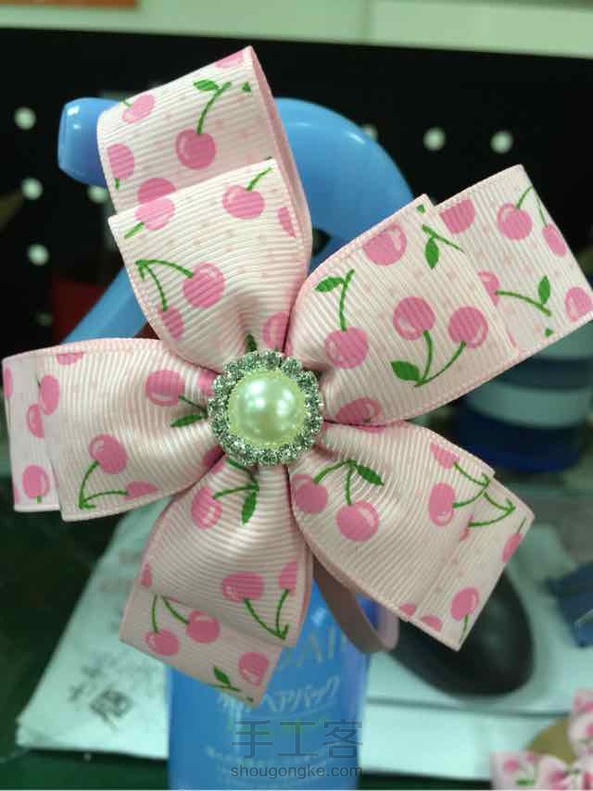 《很漂亮,感谢老师分享的教程,刚开始线选错了用的扁蜡线,导致花瓣上面有很多小孔,之后补救了一下串了一些珠子,成品很喜欢。》