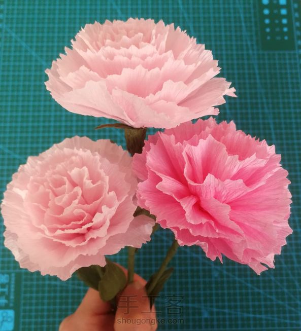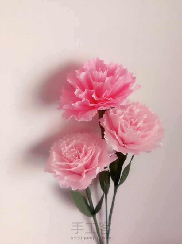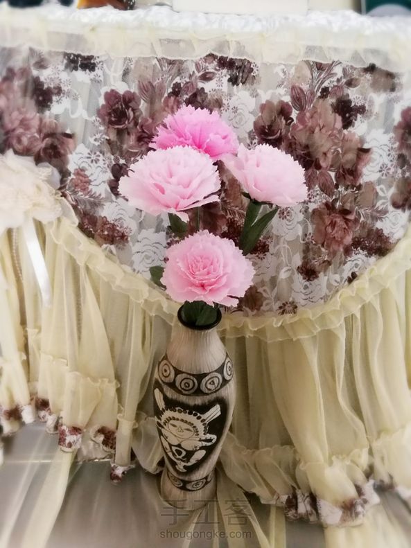 今日手作:刚学做的皱纹纸康乃馨
