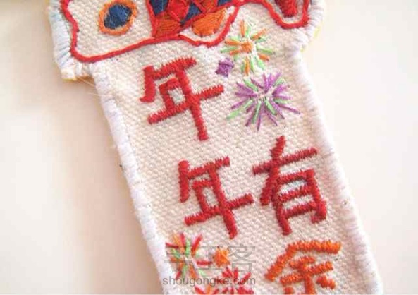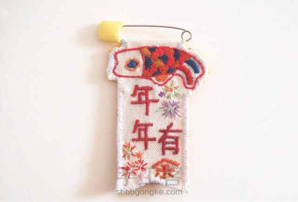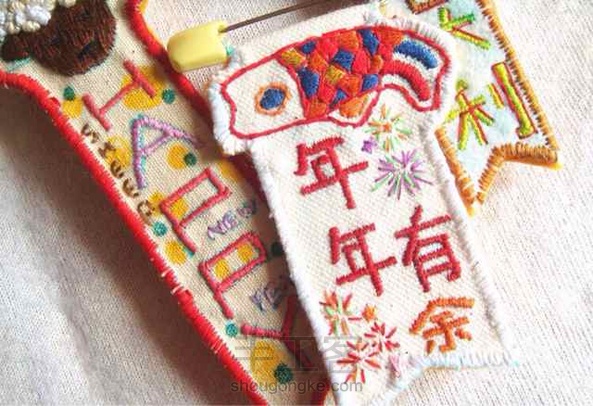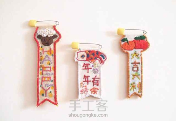 春联胸针,刺绣