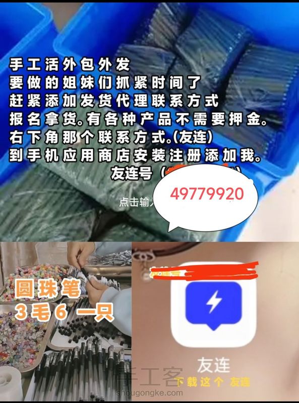 手工活各地外发不收取任何押金和材料费,有想做的可以看图片添加我登记拿货。