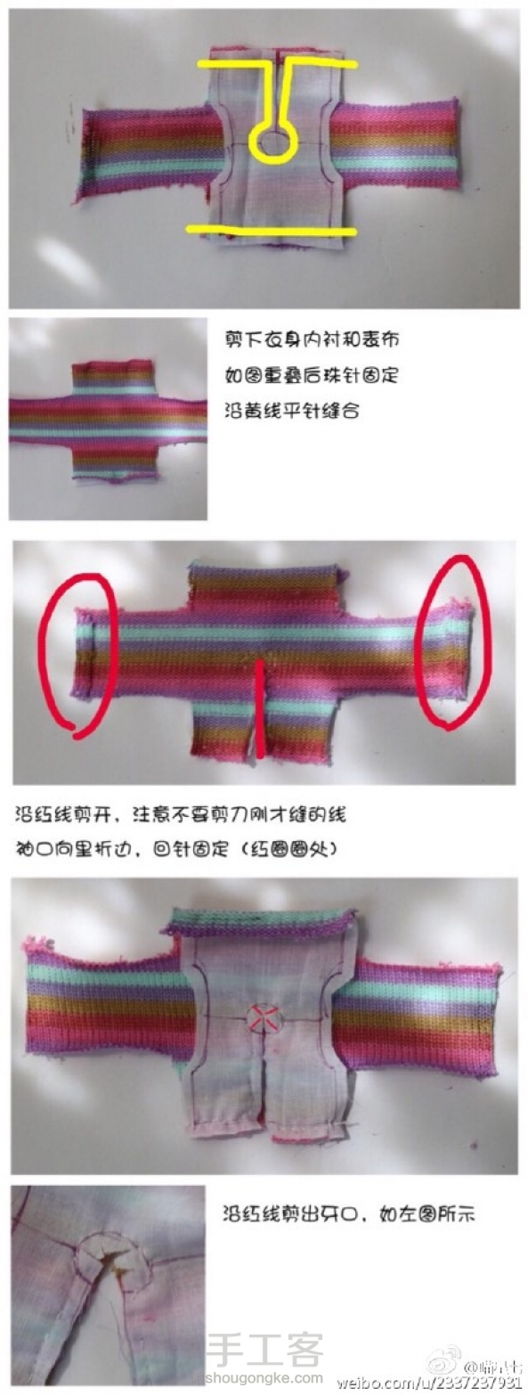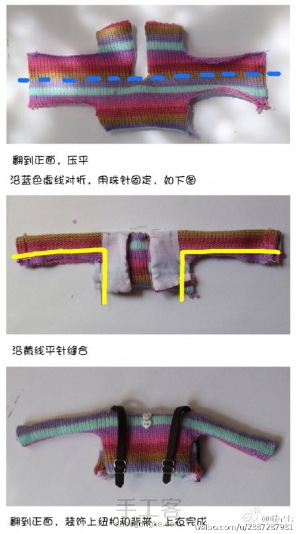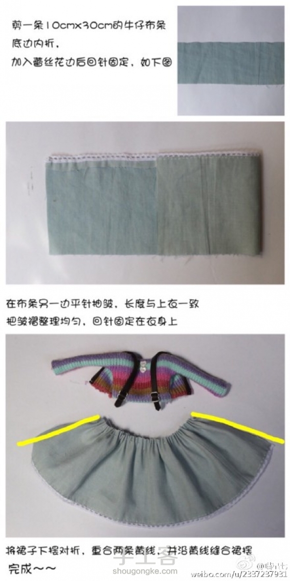 【转载】#娃衣教程##blythe#【彩虹裙】自制教程