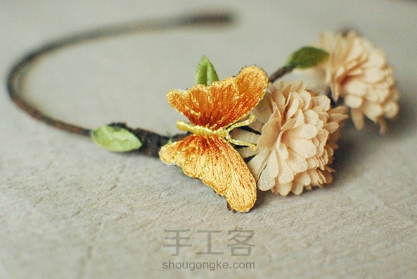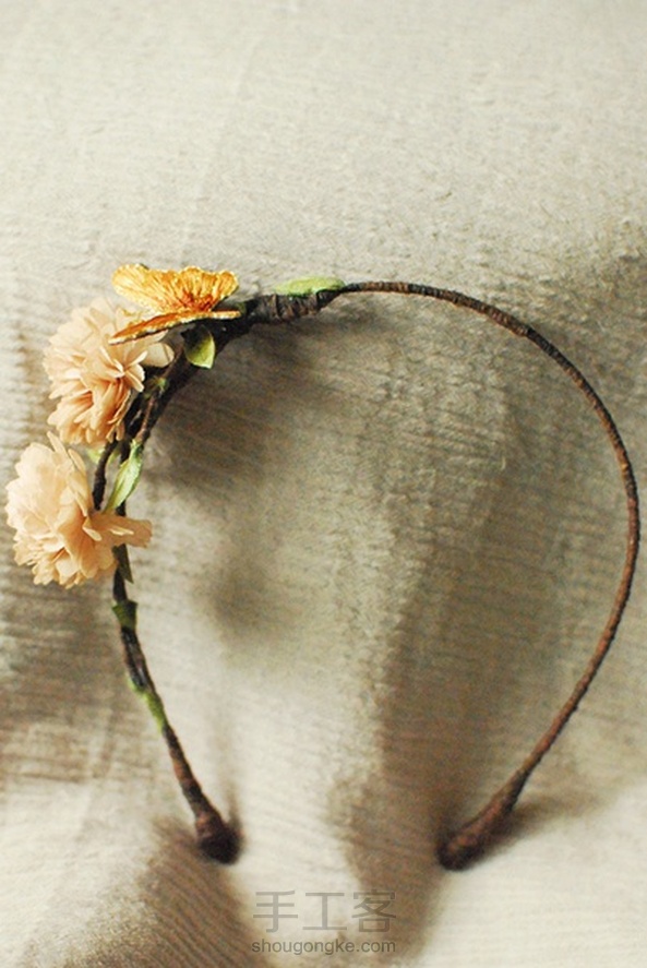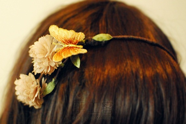 多了些裸纱,不多挺尴尬~~~木想到配上多余的布叶片,形成了唯美系的发箍。宝宝和妹纸皆适合~~~。