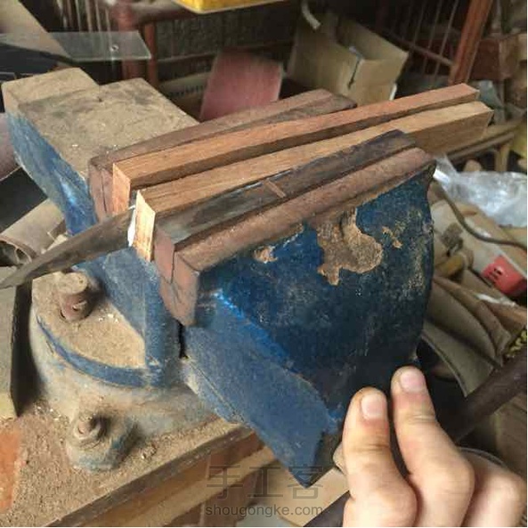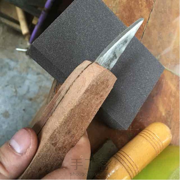 匠作者,在工具不趁手的时候,就不得不根据自己的需求来自己制作工具。长柄斜刃削刀。缅甸花梨木。