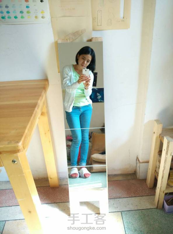 买了四块拼接的镜子,价格很实惠,才13块包邮。本来是粘工作室墙上的,正好有两根多余的木条,就粘在木条上,没啥技术含量,随便发个图记录下。~