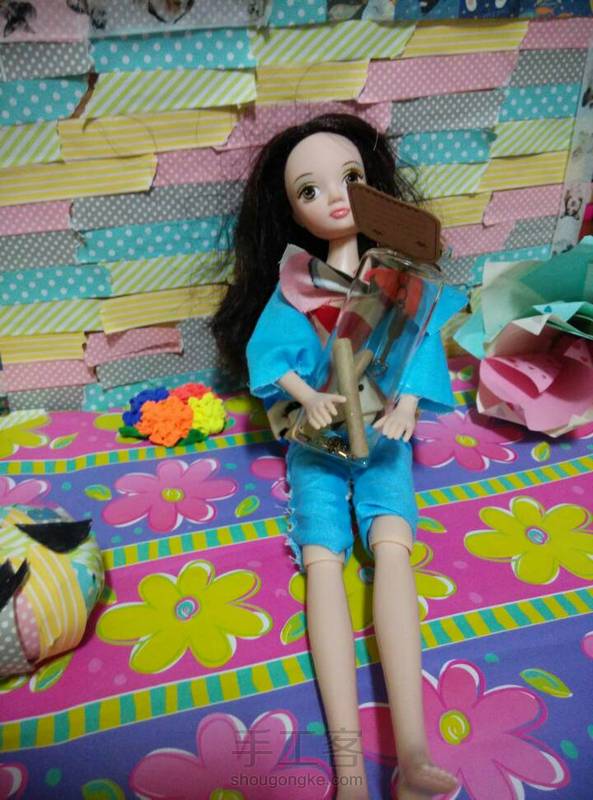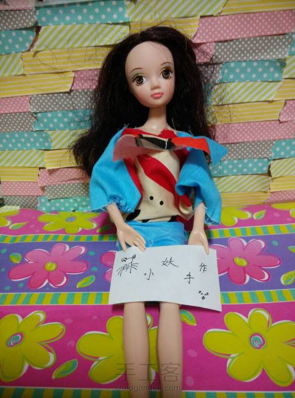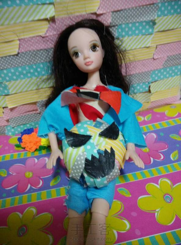 大嘴猴蝙蝠衫连体衣~这个好简单呢~手缝半个小时就完成了呢! 第一次用我的拍照背景区来照相,效果一般般吧~