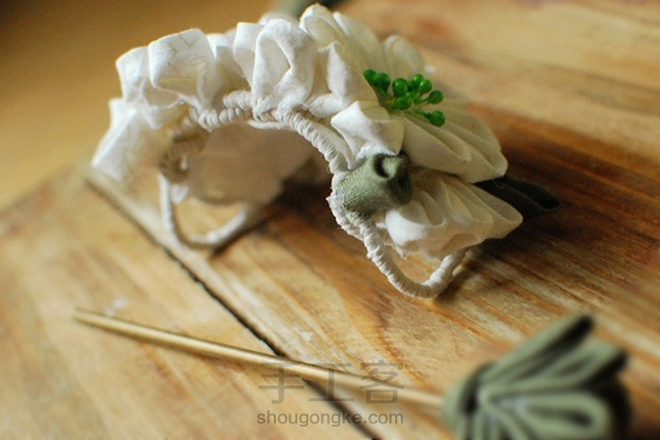 一直想尝试花发冠(丸子头、古典发皆适合。。)。。于是花冠来了。棉布款。。