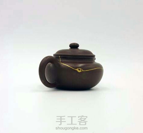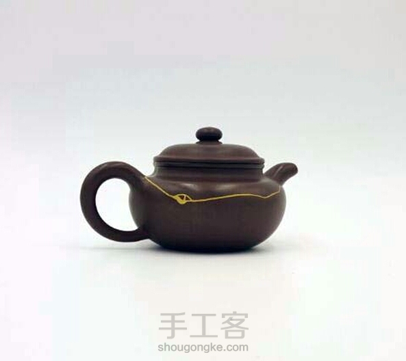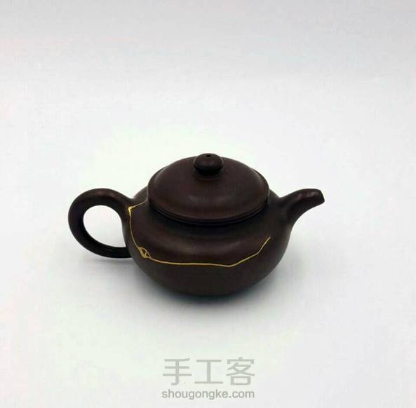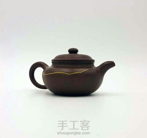 朋友拿过来的壶,磕的一条长长的裂缝,伤得不轻。修缮完,效果还可以。一道飘逸的金线划过这雾霾的天空。