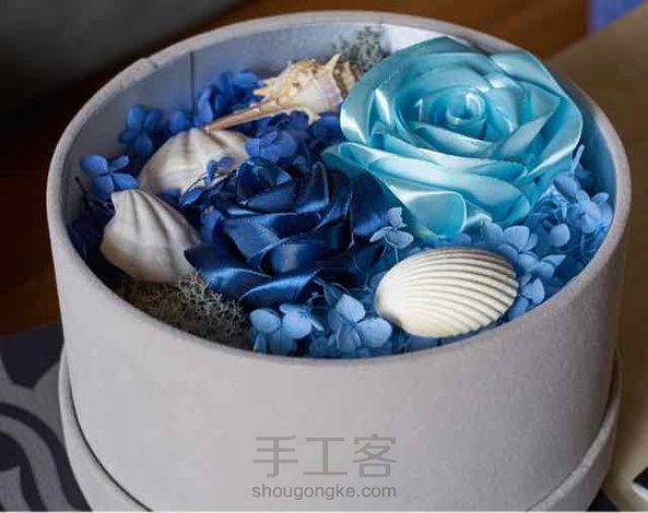 左耳没耳钉 回复 黄子珊susie:对的对的,丝带做的花。跟蓝雪学习的。然后自己找的盒子和干花