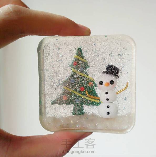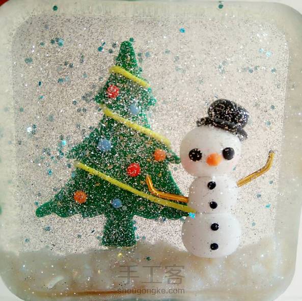 圣诞主题摆件:雪孩子 软陶+AB滴胶+闪粉