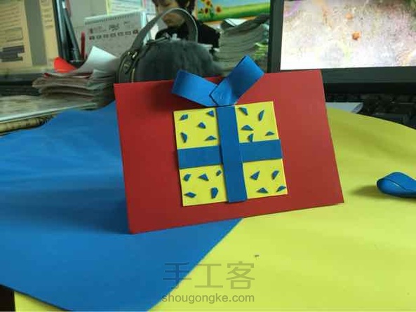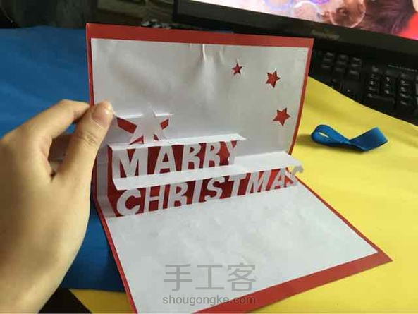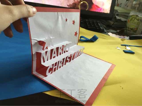 今天下午在办公室帮同事的女儿赶制的圣诞卡。粘的时候没注意,比较粗糙。。