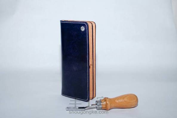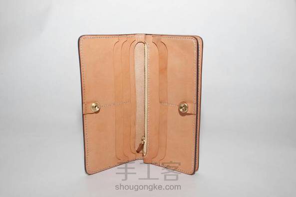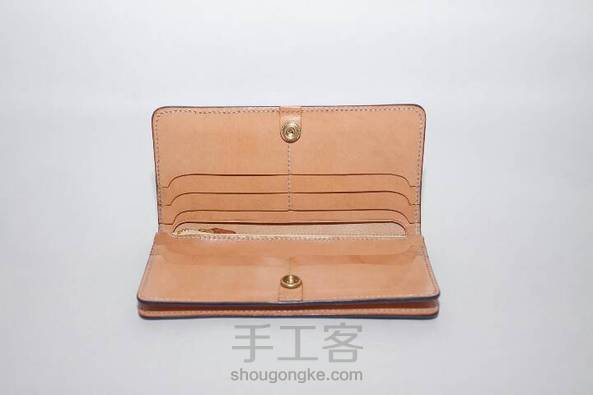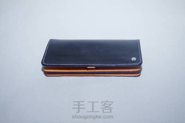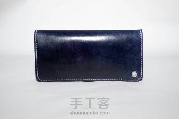 植鞣革长夹 材料:意大利进口牛皮+铜镀白金菊花钉+桥印麻线