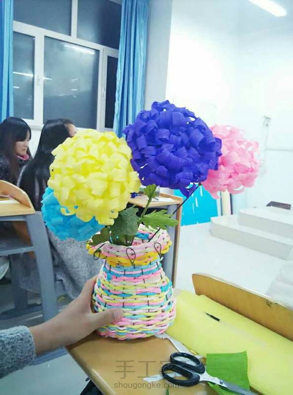 晨 曦 🐸 回复 欢乐的小猫咪:材料是皱纹纸,泡沫和铁丝,双面胶