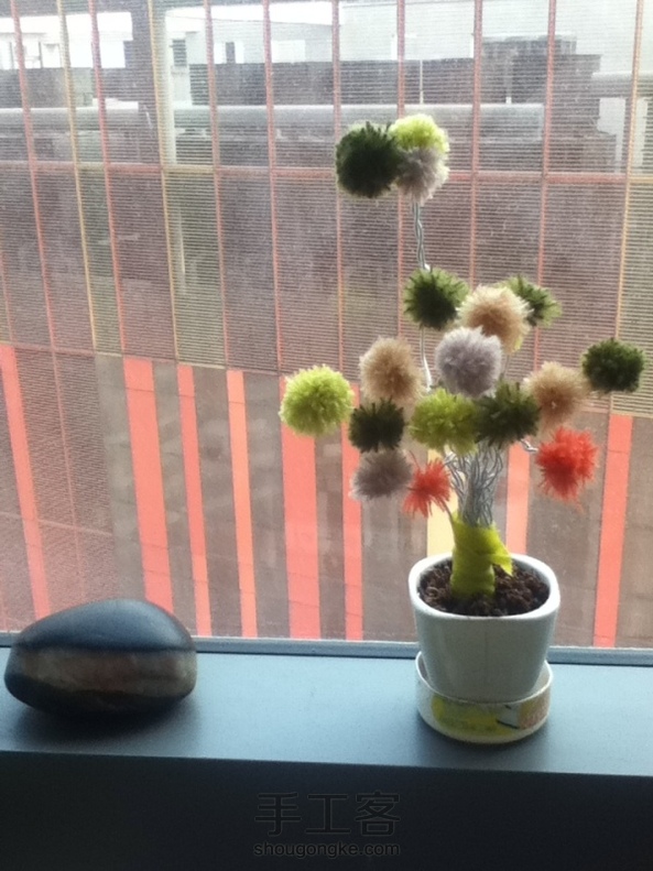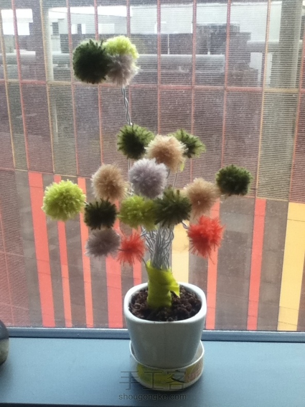 上班有好多废铁丝,缠着放着,一天种的花死了,就用费毛线做了个不死的花,安慰下自己~纪念下花盆