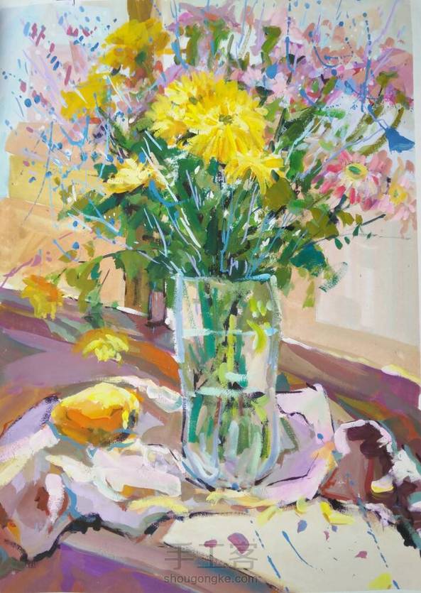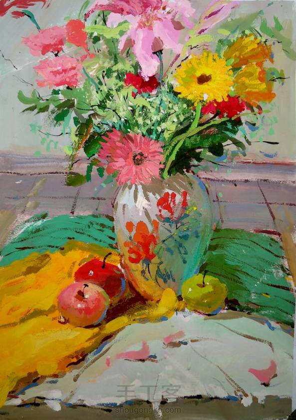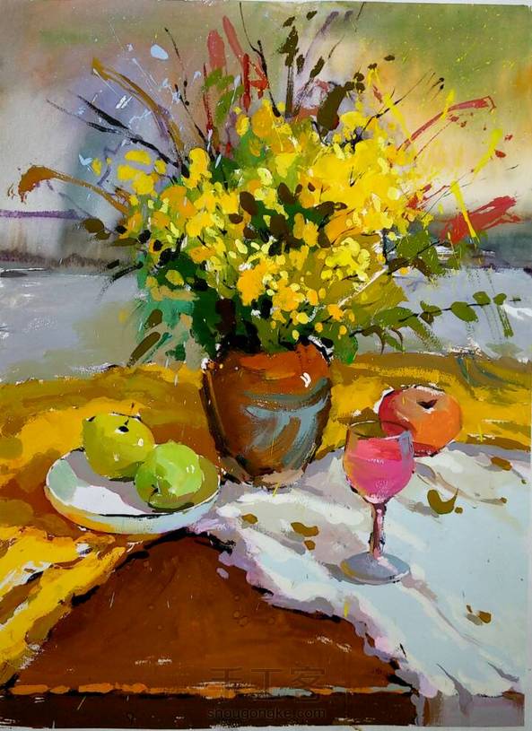 各种花与水果。很久以前画的画,回忆一下。