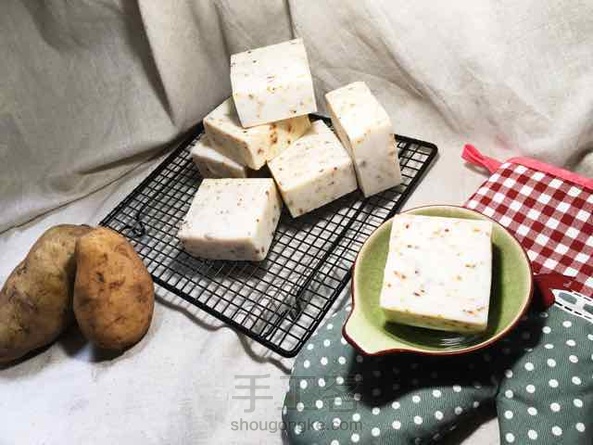 土豆家事皂,加了玫瑰,不过貌似效果不明显。。很多人说像某种糕点…