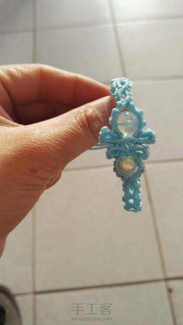 《很漂亮,感谢老师分享的教程,刚开始线选错了用的扁蜡线,导致花瓣上面有很多小孔,之后补救了一下串了一些珠子,成品很喜欢。》