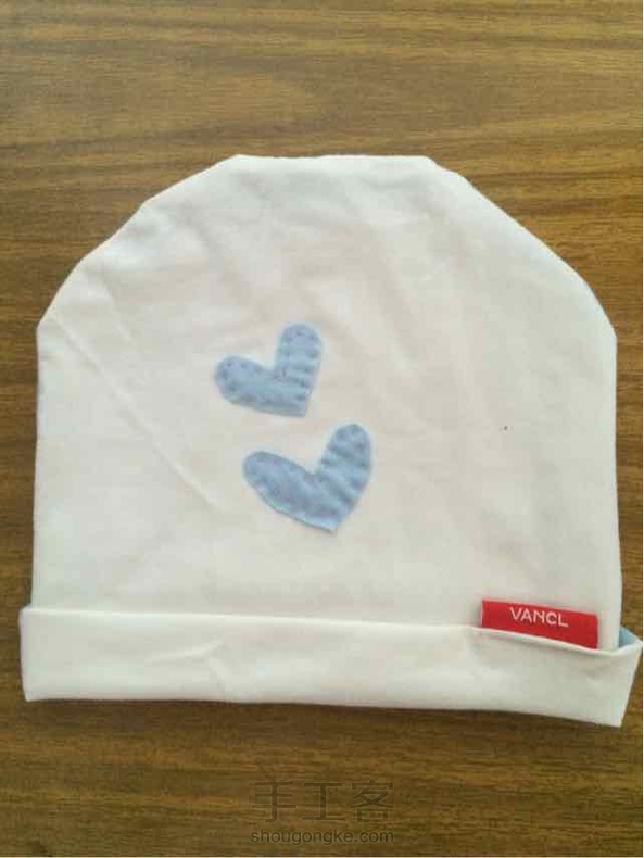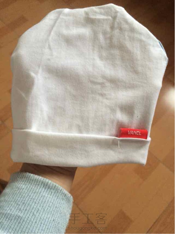 给肚子里的宝宝做的小帽子,用不穿的纯棉T恤改的,是不是很可爱呀😃