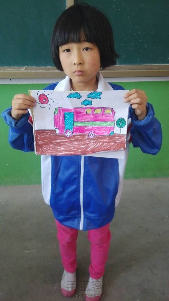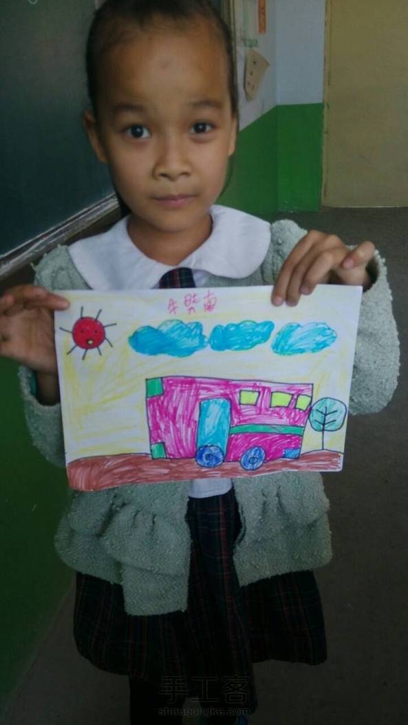 一年级的小朋友画的公共汽车🚙