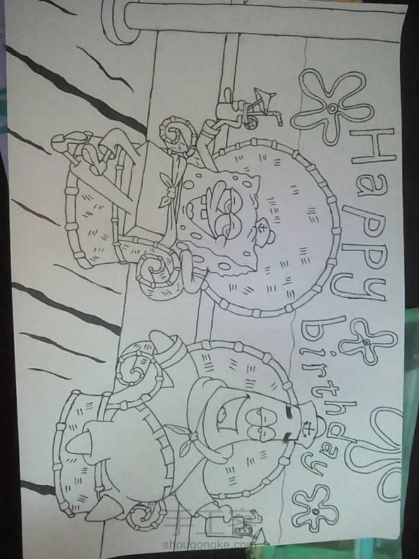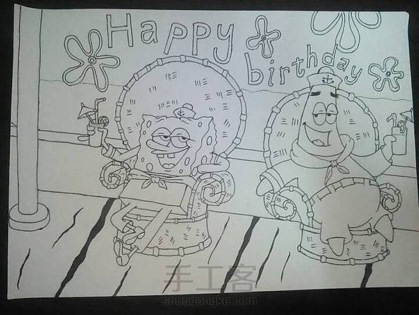 送给同学的海绵宝宝与派大星(∩❛ڡ❛∩)这两货贱贱的微笑哈哈哈(ಡωಡ)hiahiahia 还差上色就完工了,哟西(灬ºωº灬)♩~~