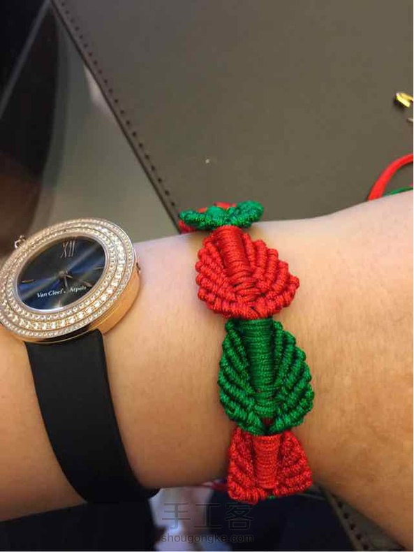 树叶手链 大胆的采用了红色和绿色作为红色吉祥手链,这款树叶编的可当手链又可当挂件,实物更漂亮,特别是本命年佩戴,更显特别有个性!