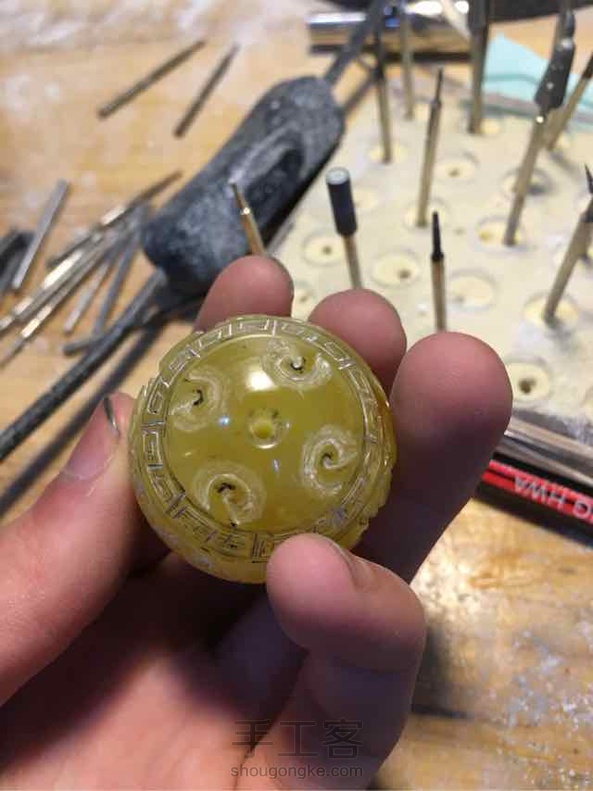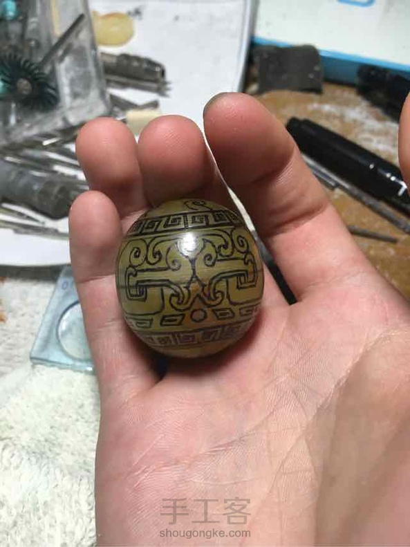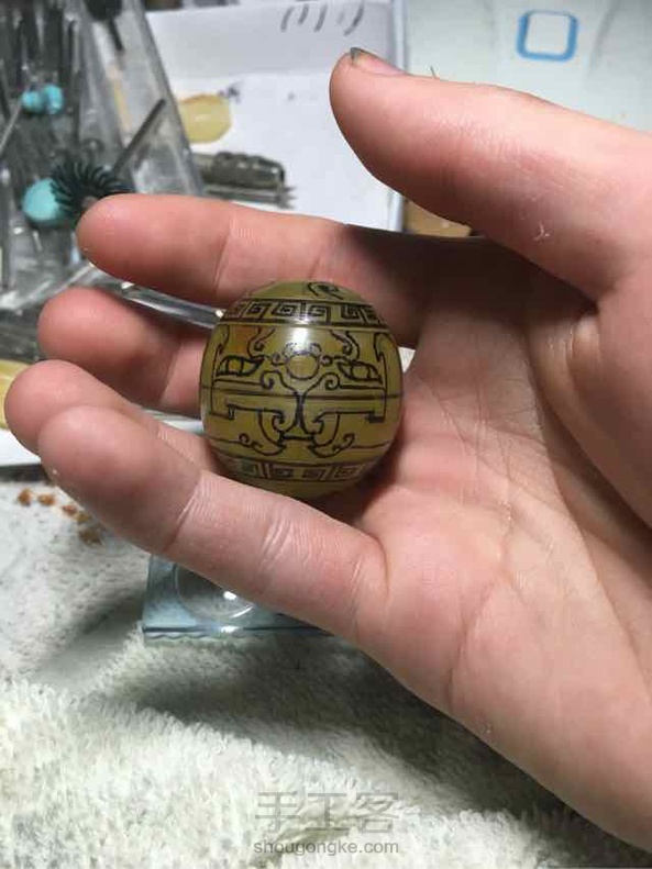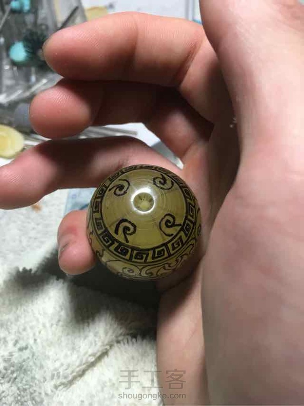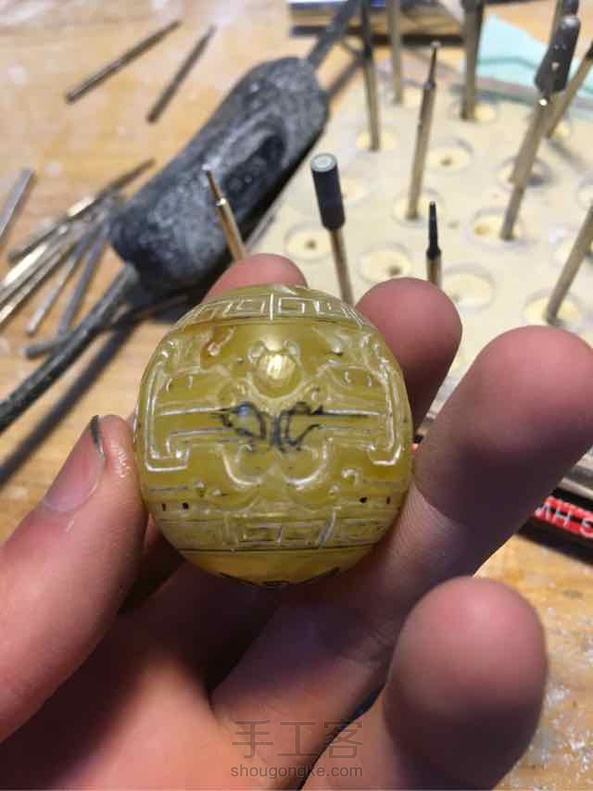 里面都是杂的大珠子 只能雕成兽纹圆珠😂