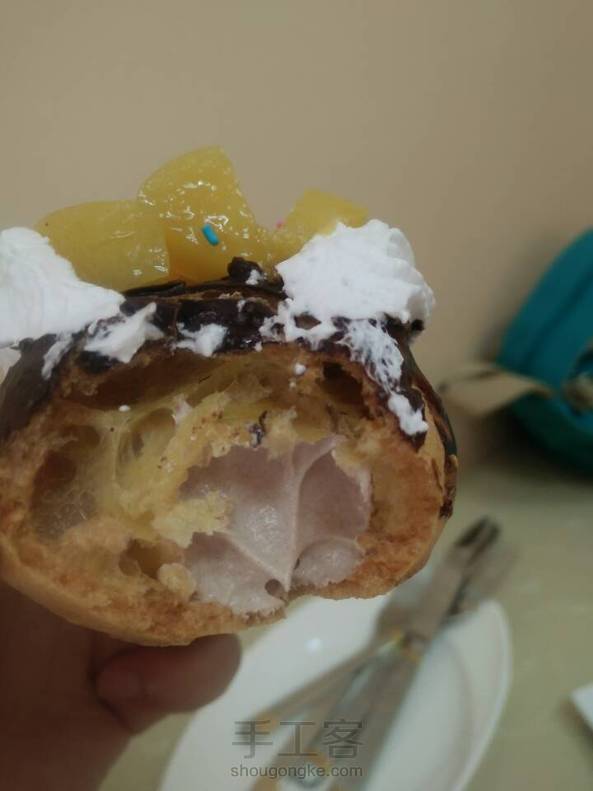 学校附近新开的泡芙店,有点硬,但是里面填的馅不错