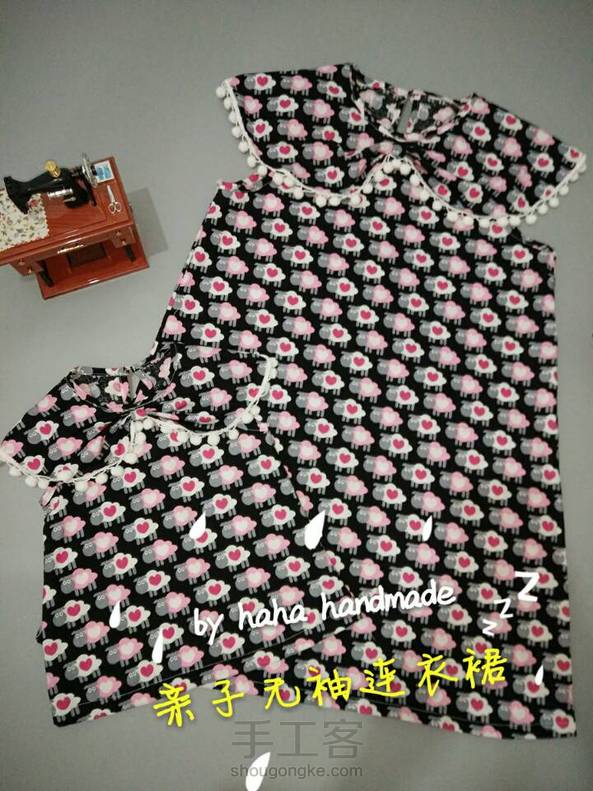 小羊亲子裙 洗了之后短了一大截 缩水很多 加了花边很可爱 虽然是黑色底色 但是穿上还是特别精神 回头率杠杠的😂