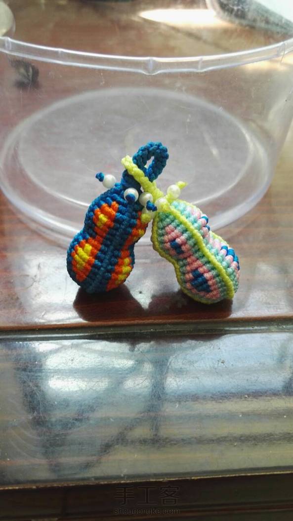 《很漂亮,感谢老师分享的教程,刚开始线选错了用的扁蜡线,导致花瓣上面有很多小孔,之后补救了一下串了一些珠子,成品很喜欢。》