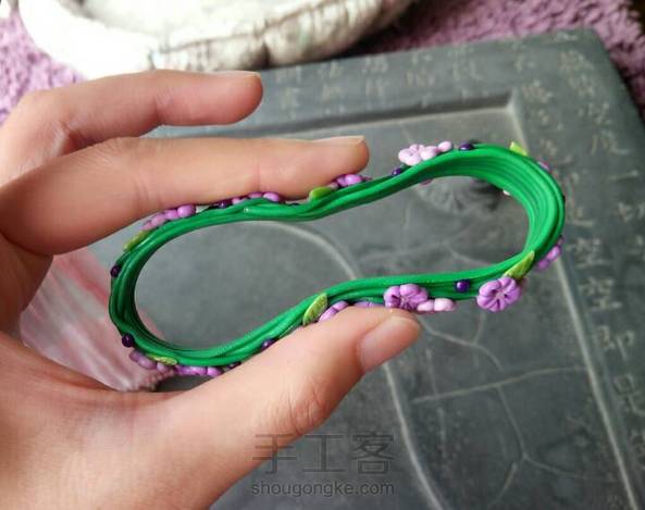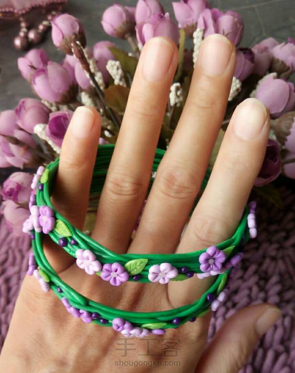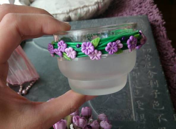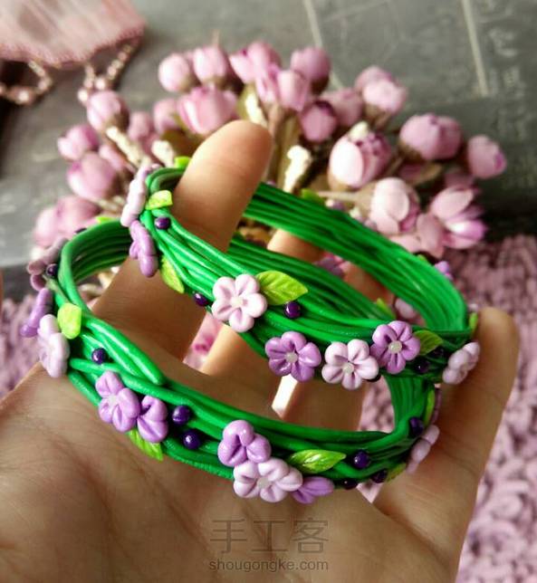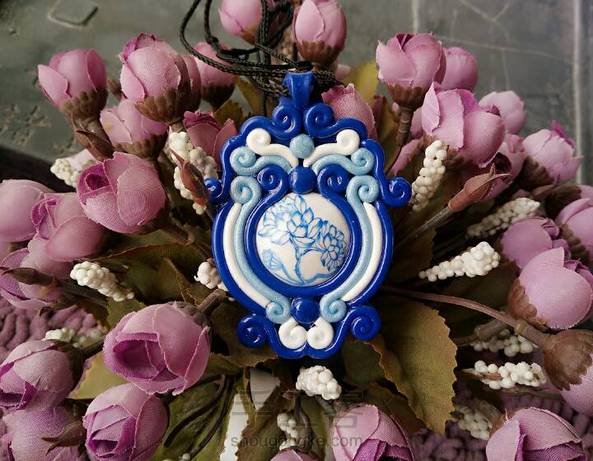 适合配花裙的森系手镯! 利用圆圆的杯口,缠上几条软陶,点缀几片叶子几朵花…超级简单有木有? 烤好后的软陶很有韧性,捏遍后轻松戴于腕上。 ٩( ´﹀ )۶♬゜ 还有一个新做的青花瓷项链…