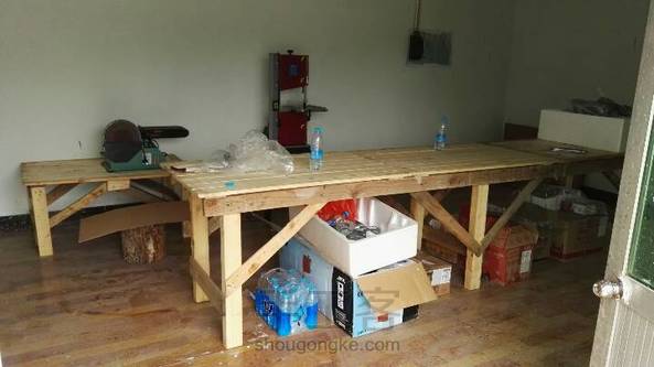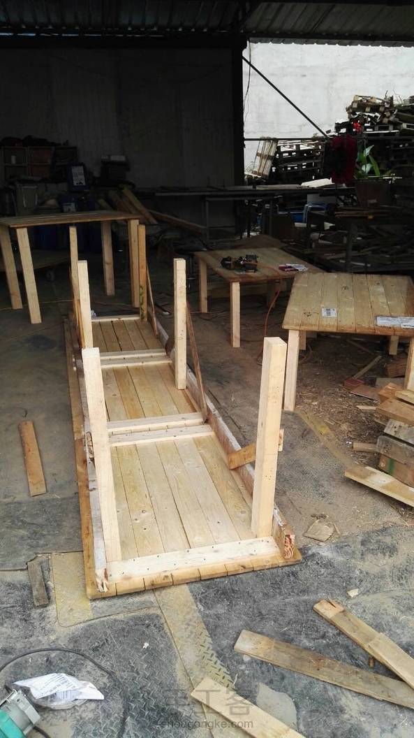 忙了一天做了几个工作台,效果不错,还没打磨!木托盘改造,万能木托盘😄 进口松木板!