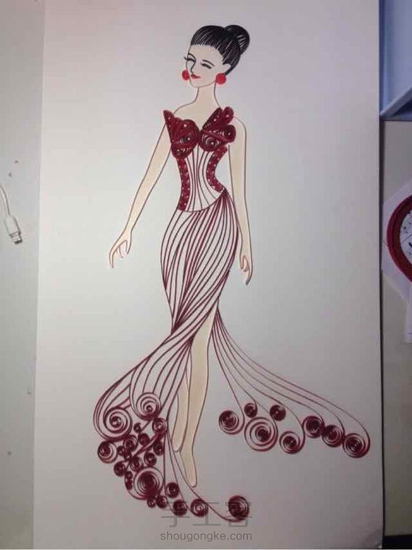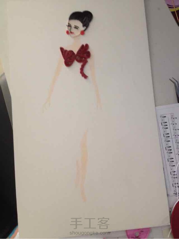 又仿了一幅,当然啦,有一些自己的元素。这是我爱上衍纸后的第一幅线条衍纸画呢
