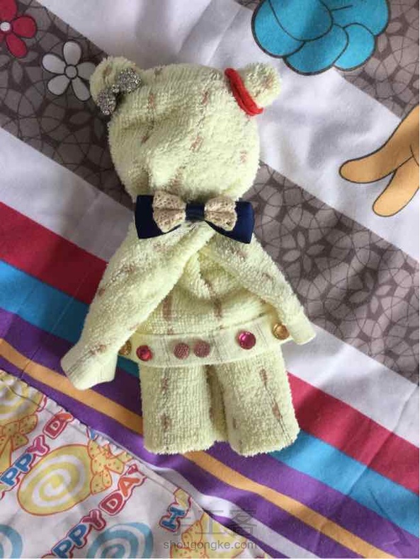 用毛巾做的teddybear 第一次发,大家凑合看一下好啦