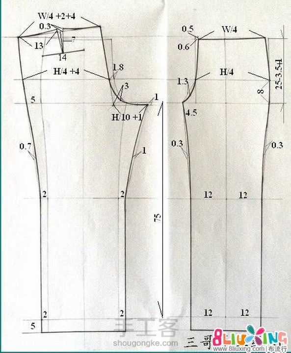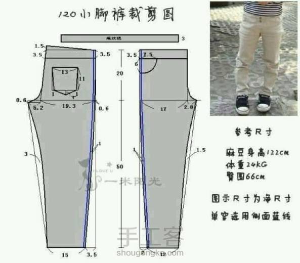第一个是成人裤子打板图H是臀围,第二个网上找的,儿童小脚裤