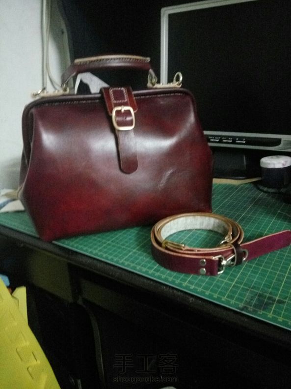 染色植鞣口金包,已送走,发上来留个念。
