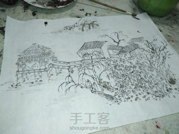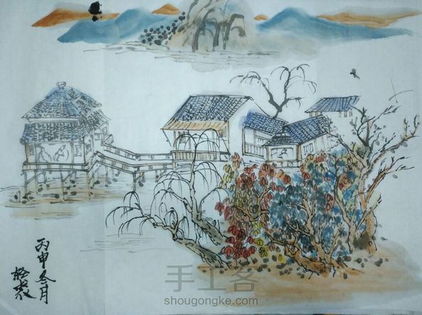 #手绘#20170113#山水#穿插点染,一个都没做到位(눈_눈)