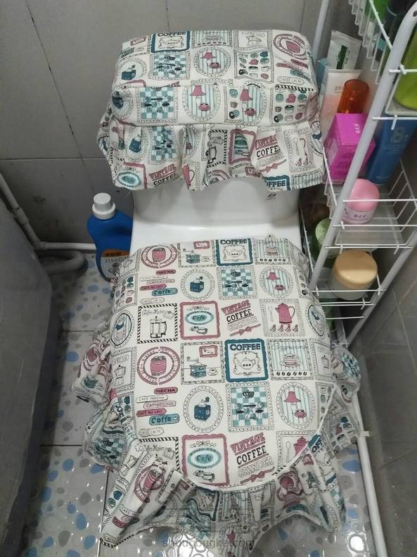 在某网看到坐便套很好看,自己租房子住,给家里填一些温馨感,前几天买的布,做了桌布,今天给坐便器上也穿了衣服,感觉还可以😊