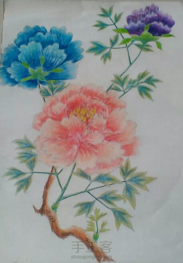 彩铅 漫画里的人物 牡丹花 (≧▽≦)