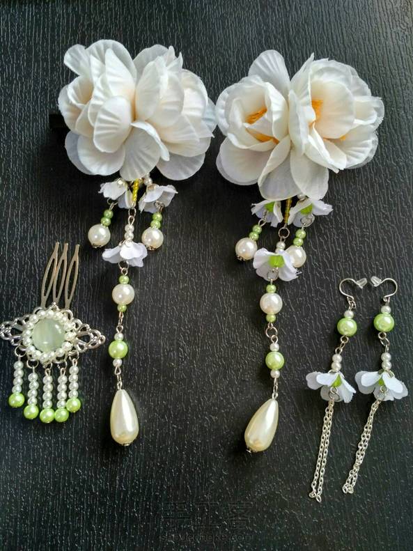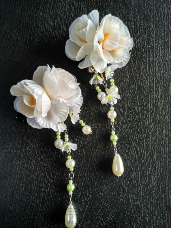 惊蛰来一发 乳白色小茶玫流苏发夹,藏着小铃铛,店里客人买的,小发梳和耳环赠品,本来只送耳环结果一做不可收拾……