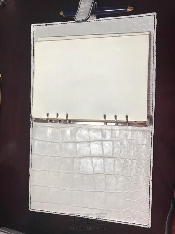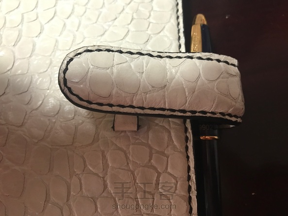 #鳄鱼纹牛皮活页本# 白皮黑线黑边油,插扣内里贴皮做了个起鼓效果,内里反正也不放什么东西干脆啥也没做。使用之前觉得白的会容易脏,实际使用一个月,除了封面被水笔划了一道弄不掉,整体看起来还可以。😎😎