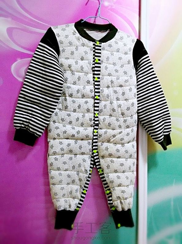 用孩子他爸两件衣服,我一件背心睡衣做的特殊睡袋。背部单层。春秋睡觉背部不容易热出汗。