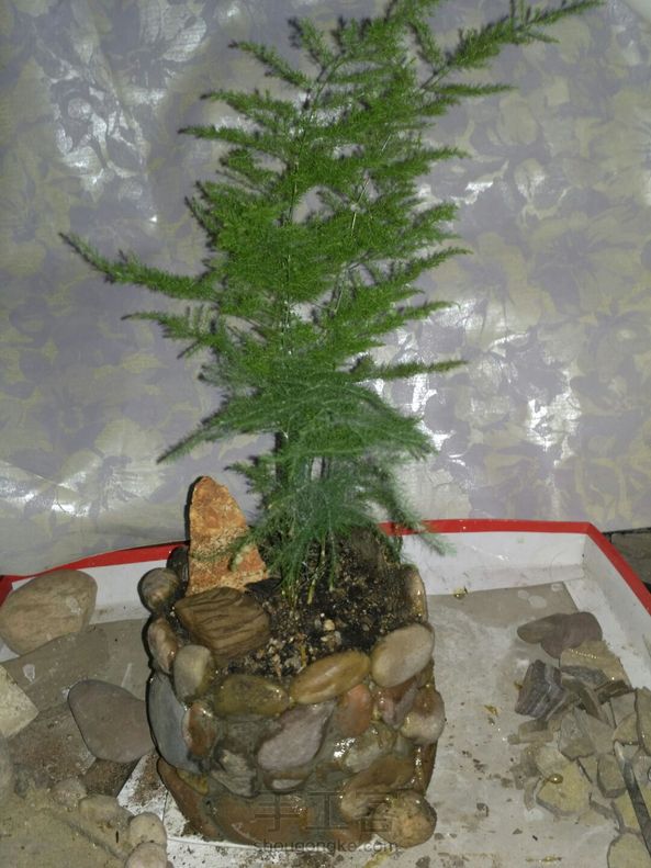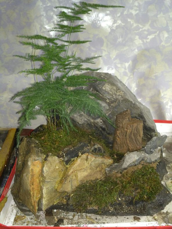 千山藏奇秀,无为咫尺中。残石倚雅木,堪堪觅古风。 初次尝试,碎石花盆