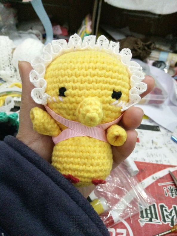 跟着群里图解钩了一只可爱的求抱抱的小鸡宝宝,送给我即将到来的小鸡宝宝!第一次钩,材料东拼西凑,但是我和爸比都好喜欢,希望小宝宝也喜欢!嘿嘿……