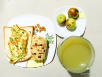 20170925--早餐:面包片、蔬菜煎蛋、葡萄汁、坚果