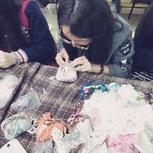 在中学教孩子们做玩偶。