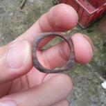 是中间的那个 身边只有502 不想放弃任何一块有前途的材料 打磨好戒指上6条裂痕 上了蜡 用了点力 又断了变成4块 前前后后10条裂痕 最后这样 留做记念